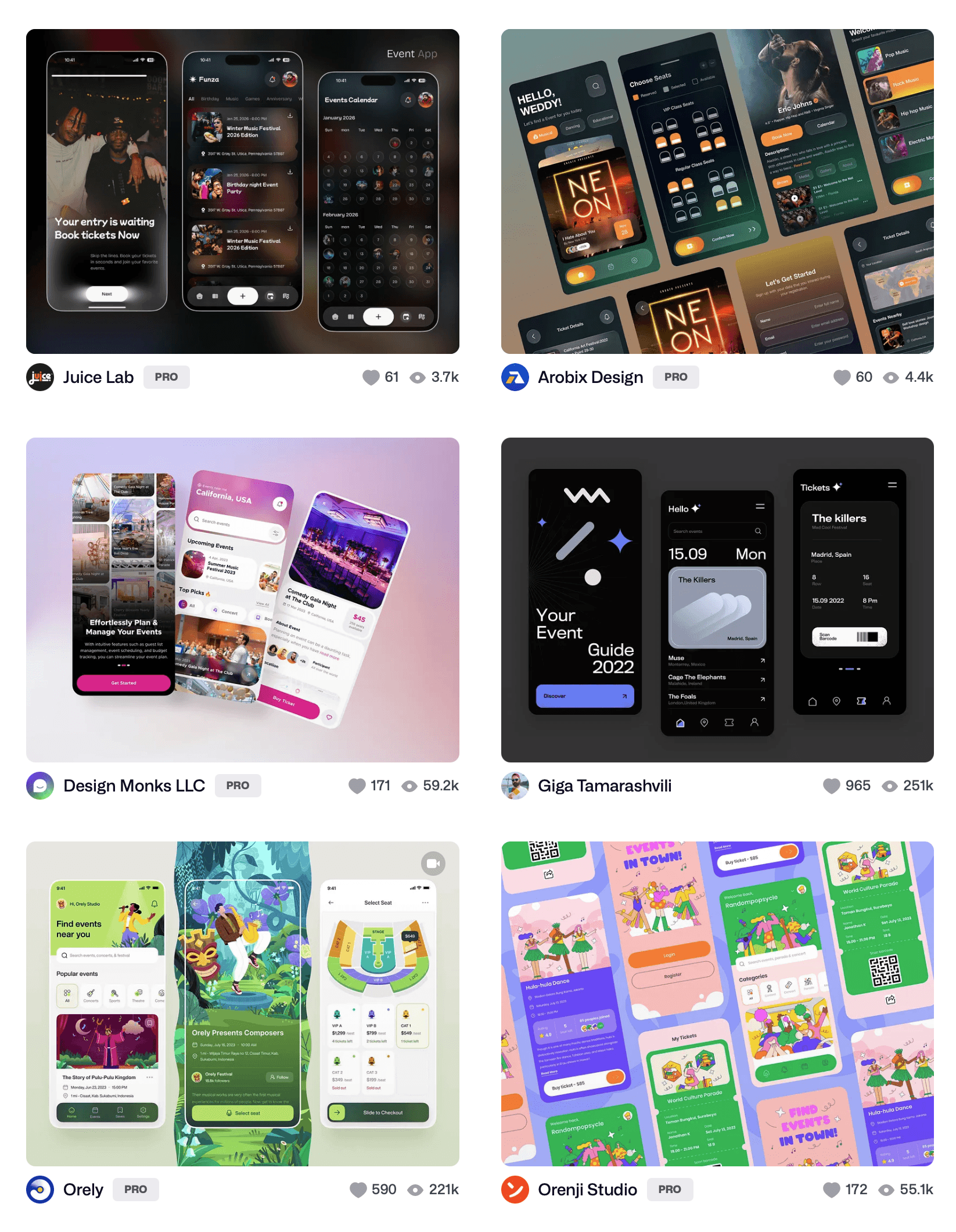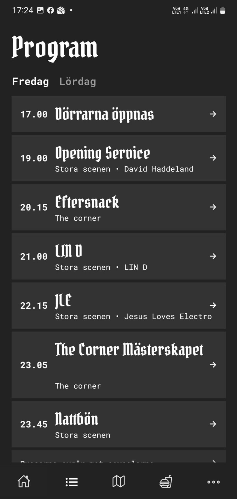 Jag började med att titta på appar för liknande event, appar jag själv använt och letade inspiration på tjänster som Dribbble, Pinterest och Behance.