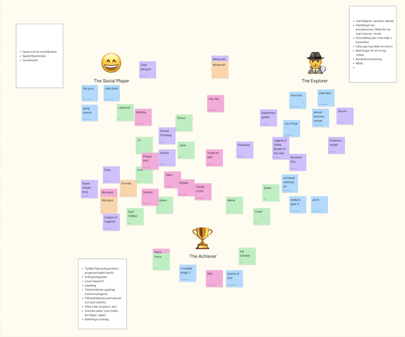 Tillsammans med beställarna tog vi fram en upplevelsekarta med beteendetyperna, tre ord för hur spelet ska kännas, och det övergripande målet.