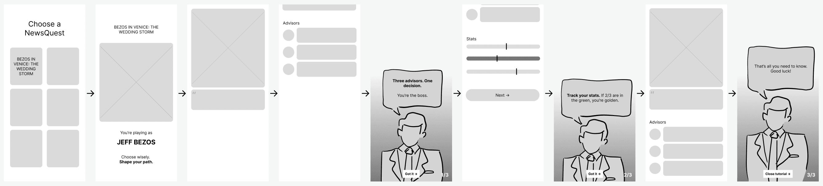 Vi skissade upp spelets flöde, och vart den nya onboardingen skulle komma in.